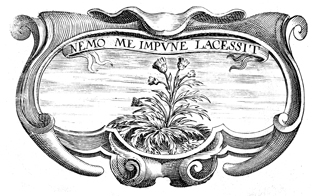 Description: A copper plate engraving of an image of a dandelion plant with flowers on the plant. The coat of arms and engravings in this book were designed by Silvestro Pietrasanta (1590-1647).