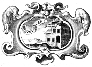 Description: A copper plate engraving with the image of a bird returning to its nest, located on the top right corner of the building. The coat of arms and engravings in this book were designed by Silvestro Pietrasanta (1590-1647).