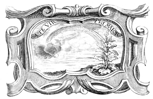 Description: A copper plate engraving with the image of a rainbow emerging from the clouds and ending on a plant. The coat of arms and engravings in this book were designed by Silvestro Pietrasanta (1590-1647).