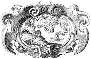 Description: This copper plate engraving illustrates the changing of landscapes in the foreground to the background. The coat of arms and engravings in this book were designed by Silvestro Pietrasanta (1590-1647).