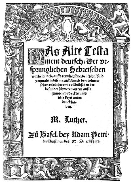 Description: An architectural title-page border with columns and cherubim.