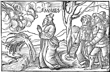 Description: The horned Moses receives instructions from the Lord to give to the people of Israel.