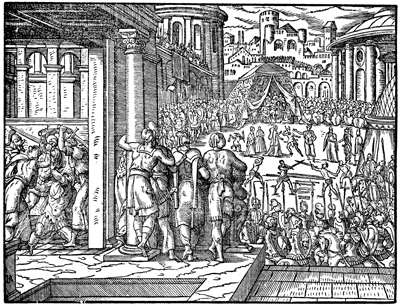 Book Title: Flauij Josephi, dess hochberühmpten jüdischen Geschichtschreibers, Historien vnd Bücher : von alten jüdischen Geschichten/zwentzig/sampt einem von seinem Leben : vom jüdischen Krieg/vnd der Statt Jerusalem endtlicher Zerstörung/siben : vom alten Herkommen der Jüden wider den Apion von Alexandria/zwey : von den Machabeern/oder vom Regiment der Vernunfft/eins : Alles auss dem vrsprünglichen griechischen Examplar sampt aller Bücher und Capitel summarischem Innhalt, mit höchstem Fleiss von neuwem verteutscht darzu mit Biblischen Concordantzen Jarrechnung ordenlichen Registern/und lieblichen Figuren geziert : mit Römischer Reys. Matest. Freyherr.