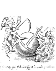 Description: Four individuals are shown attempting to grasp the orb and the cross, which symbolizes power. The woman in the image, who may symbolize Queen Elizabeth I, is the one who ends up holding the cross, and therefore the power.