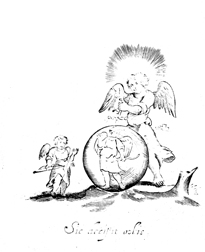 Description: Three angels are shown in this image, one standing above the sphere, one trapped inside the sphere, and one standing to the left side of the sphere.