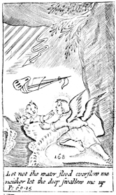 Description: An angel is shown coming to the rescue of an individual in the turbulent waters. In the background, a ship is shown sinking into the ocean.