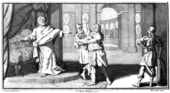 Description: Herod condemns John the Baptist for speaking against his sins. Engraved by A. L. (?) from the design of G. F. L. Debrie.