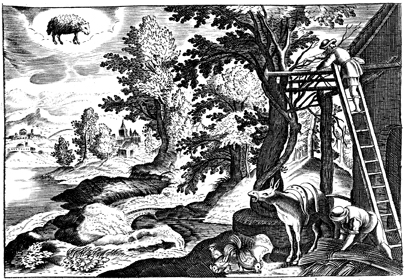 Description: It is the third of the calendar engravings. The image for March depicts a standard spring scene of planting and renewal. As well, there is the zodiac sign Aries in the sky. The artist, Jacques Stella (1596-1657), and the engraver, H. David, are responsible for the etching.