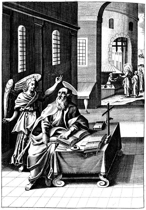 Description: Matthew, one of the four Evangelists, is depicted with his attribute, the angel. Jesus calls Matthew from the tax collector’s booth. The artist, Jacques Stella (1596-1657), and the engraver, H. David, are responsible for the etching.