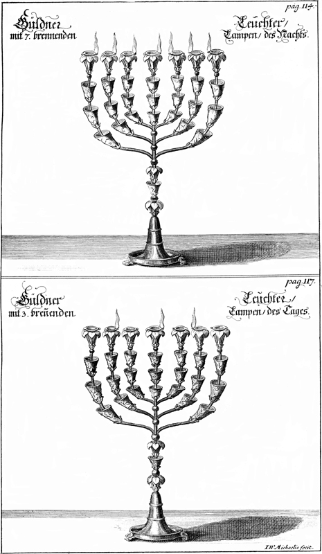 Description: Lampstand with branches and seven bowls made to look like almond blossoms.