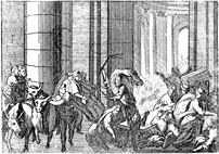 Description: Jesus cleanses the temple of the merchants and money-changers.