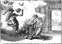 Description: The angel Gabriel visits Mary and announces that she will give birth to Jesus.