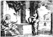 Description: Jesus speaks with the Samaritan woman at the well in Sychar.
