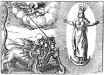 Description: The woman's baby is saved from the beast upon his birth and the dragon is defeated by angels.