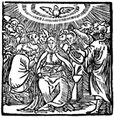 Description: The Holy Spirit comes to the believers during the Pentecost in the form of a dove.