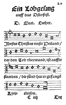 Description: Music for a song of praise from Martin Luther’s collection of hymns for use in Wittenberg.