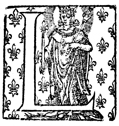 Description: An initial letter L illuminated with a depiction of a king wearing a crown and surrounded by fleur-de-lis.