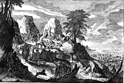 Description: Moses brings water from the rock at Meribah by following God’s command to strike the rock with the staff he used at the Nile.