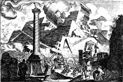 Description: The walls of Jericho begin to fall as the Israelites march around the city with the Ark of the Covenant and blow their trumpets.