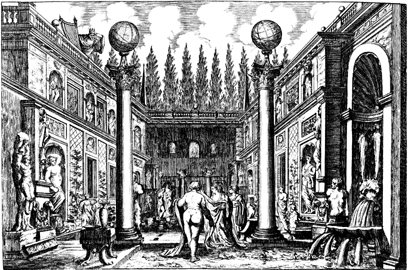 Description: As David looks down from a palace balcony, Bathsheba bathes in a pool, accompanied by her attendants.