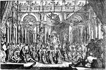 Description: The Queen of Sheba visits King Solomon in Jerusalem.