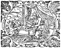 Description: Luke writes his gospel, accompanied by an ox, one of his saintly attributes. Inscribed at the bottom of the image are the Latin initials of the engraver Jost Amman (1539–1591).