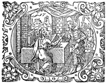 Description: Paul turns away from his writing in order to hand a note to an aged messenger.