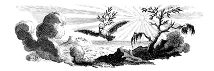 Description: A tailpiece that depicts a dove bearing an olive branch. Created by Bernard Picart (1673-1733).