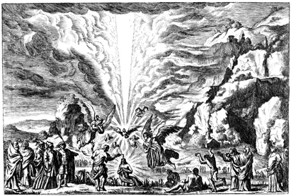 Description: The Holy Spirit, in the form of a dove, descends upon Christ as he emerges from the water. He is surrounded by angels, cherubim, John the Baptist and a host of spectators.