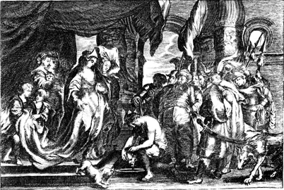Description: The head of John the Baptist is presented, as requested, on a silver platter to Herodias and her daughter.