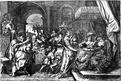 Description: Salome, daughter of Herodias, requests the head of John the Baptist on a silver platter after dancing for Herod.