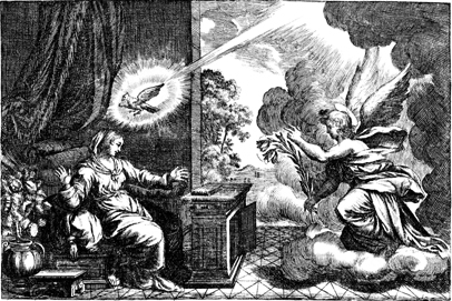Description: The angel Gabriel visits Mary and announces that she will give birth to Jesus.