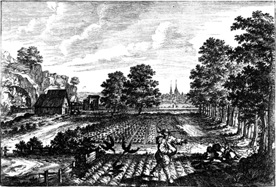 Description: As the sower scatters seed, the seed that falls along his path is eaten by birds; the seed (right) that falls on the rocks has produced withered plants.