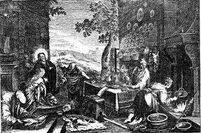 Description: Martha works as Mary listens to Jesus.