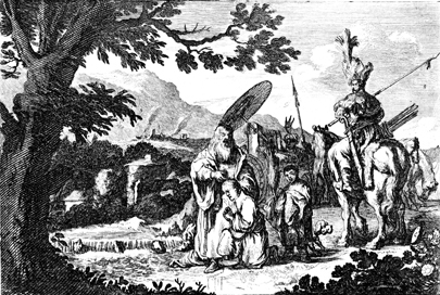Description: An Ethiopian eunuch to whom Philip explained the Gospel kneels before him prior to his baptism.