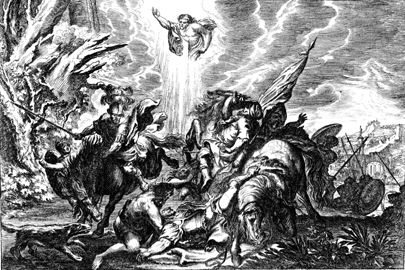 Description: As Saul travels on a road to Damascus, Christ appears to him in a flash of light from Heaven.