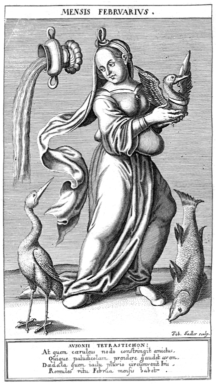 Description: A girl holds a bird as a goblet spills next to her. At her feet are another bird and a fish.
