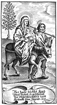 Description: Mary, Joseph, and Jesus travel to Egypt on a donkey to escape King Herod’s wrath.