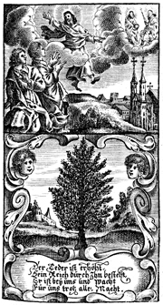 Description: Jesus bids his disciples farewell as he ascends to heaven. Below is an image of a tree.