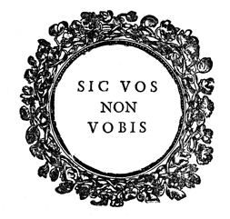 Description: This end-page image features vines surrounding the Latin phrase SIC VOS NON VOBIS which means “thus do ye, but not for yourselves”.
