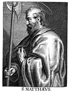 Description: Portrait of St. Matthew with a halo carrying an axe.