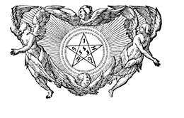 Description: this tailpiece features a five-sided star surrounded by angels.