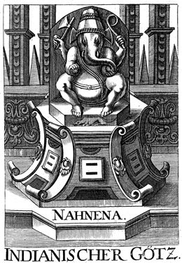 Description: Elephant-headed god Ganesha, the Indian god of success, holding an axe and a noose.