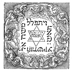 Description: This tailpiece features the six-sided Star of David surrounded by cherubim.