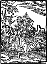 Description: Jesus carries a lamb on his back towards a city.
