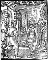 Description: Shepherds visit the newborn Jesus after learning of his birth from an angel.