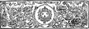 Description: This headpiece features roses on either side of the coat of arms of France, which contains three fleurs-de-lis beneath a crown.