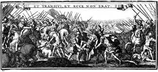 Description: This historiated headpiece depicts a battle between two armies with the Latin phrase ET TRANSIVI, ET ECCE NON ERAT from Psalm 37:36 meaning “but he soon passed away and was no more”.