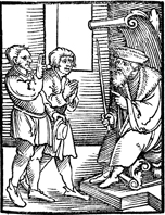 Description: Illustrating the violation of the eighth commandment, “Thou shalt not bear false witness”.