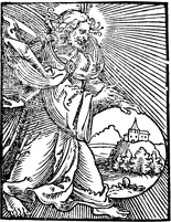 Description: God is depicted with a halo and his hand resting on an orb containing the Earth.